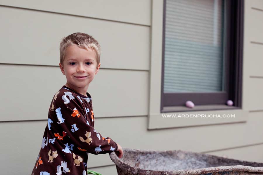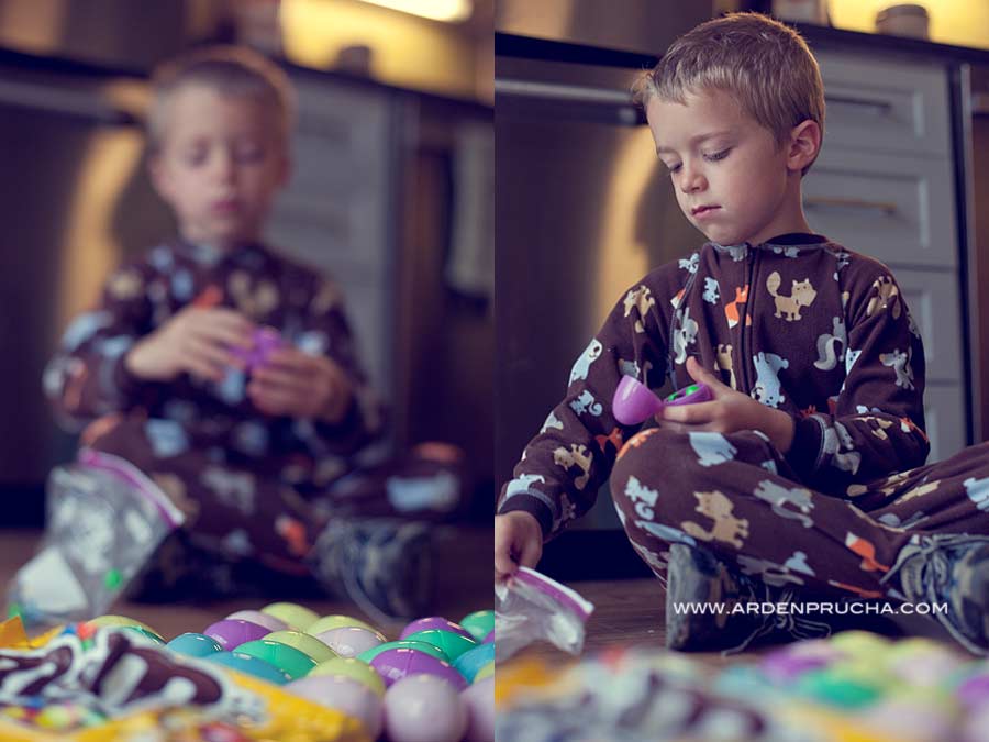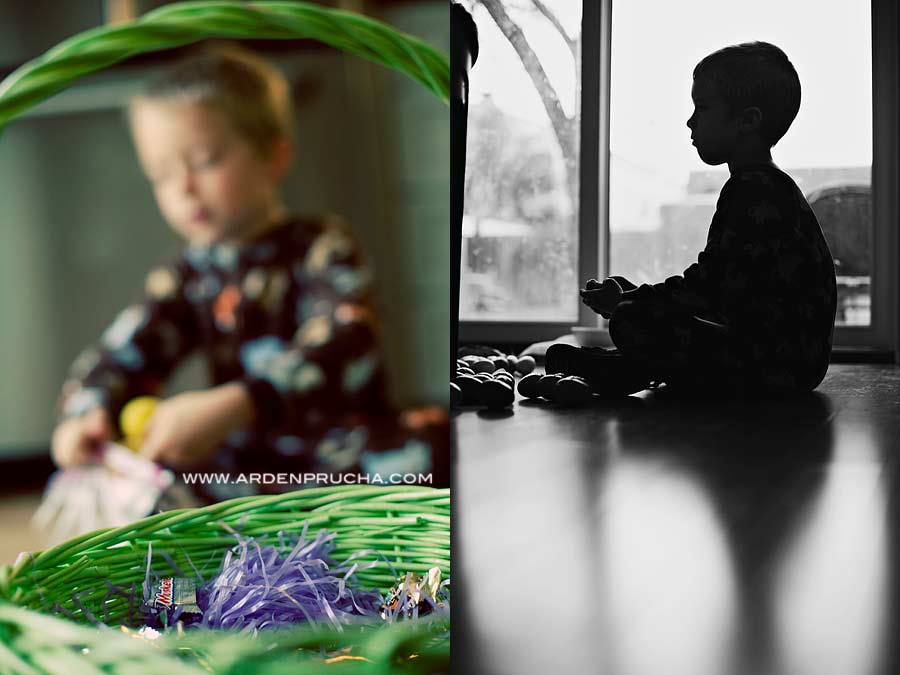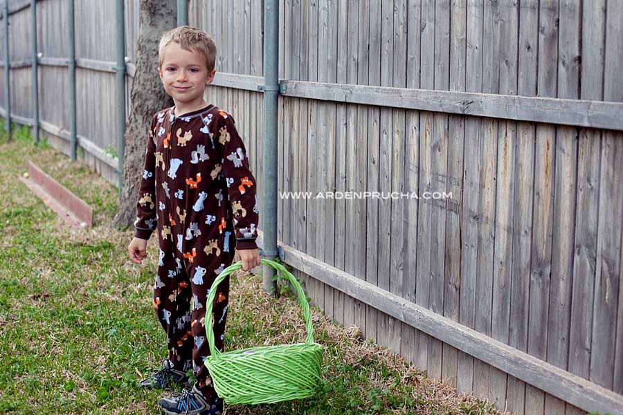 Our Easter weekend was a little hectic (leading up to as well). We have done a lot more socializing and I have been working (shooting/editing) a lot as well. Saturday night rolls around and we had still not decorated the eggs I boiled on Friday (thinking I was going to get things done early). After a dinner at friends on Saturday we arrived home at 8pm and decided that dying eggs wasn’t happenin’ so we brought out the trusty supply of colorful Sharpies! The eggs were moist from the humid air meeting the cold egg, but we decorated away. We decided that Easter Bunnies ONLY hide DECORATED eggs and he totally did! It is nice getting some one on one time with Pierson. Parx slept through Santa and the Easter Bunny, so Pierson got us all to himself once again!